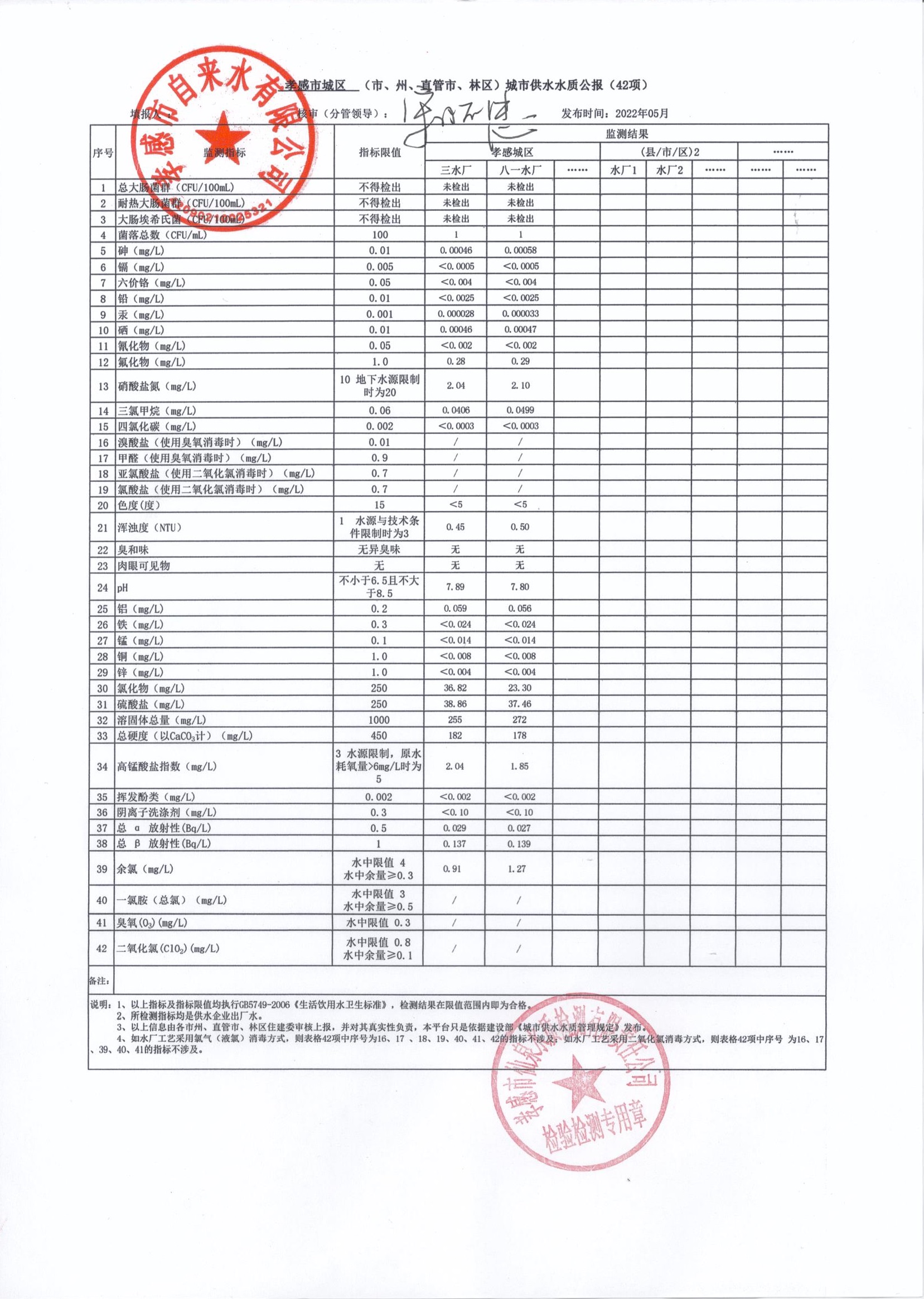 2022年5月水質(zhì)報(bào)告