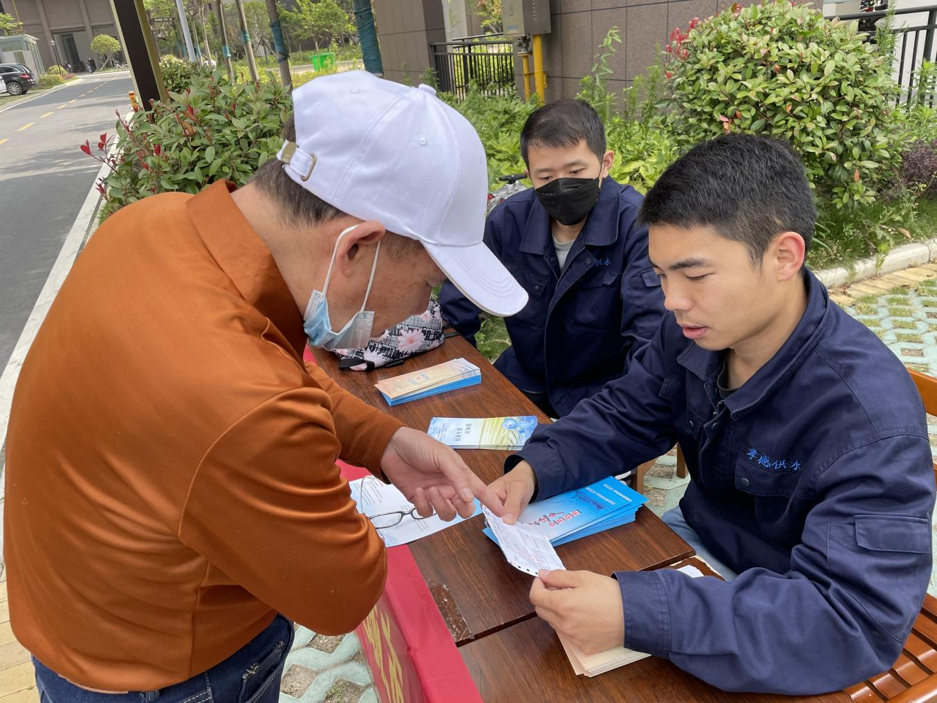 5月18日上午,公司在文昌閣社區(qū)開展以“建設(shè)節(jié)水城市,推動(dòng)綠色低碳發(fā)展”為主題的節(jié)約用水宣傳活動(dòng)?;顒?dòng)現(xiàn)場(chǎng),通過設(shè)置宣傳展臺(tái)、拉橫幅、發(fā)放節(jié)水手冊(cè)、宣傳單等方式,向用戶普及生活節(jié)水技巧,還義務(wù)到用戶家中查看水表、水管等等供水設(shè)施有無故障,居民們對(duì)此紛紛稱贊。