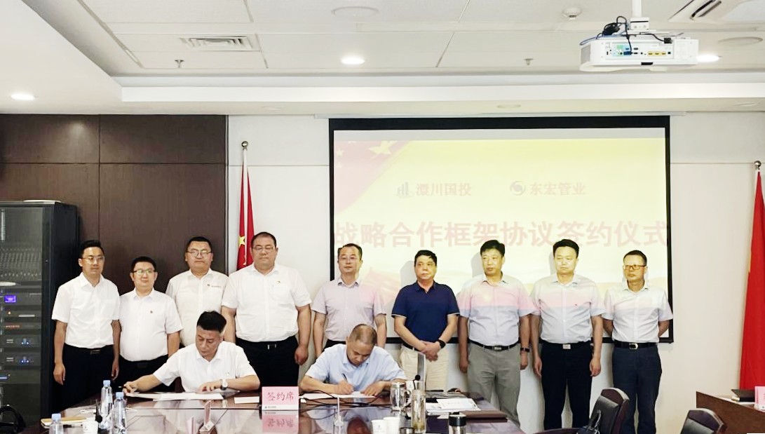 6月28日,公司與山東東宏管業(yè)簽署戰(zhàn)略合作框架協(xié)議,發(fā)揮各自優(yōu)勢進行產(chǎn)業(yè)鏈招商、水務水利項目合作。東宏管業(yè)副董事長、總裁倪奉堯,澴川國投總經(jīng)理陳情出席簽約儀式并講話。