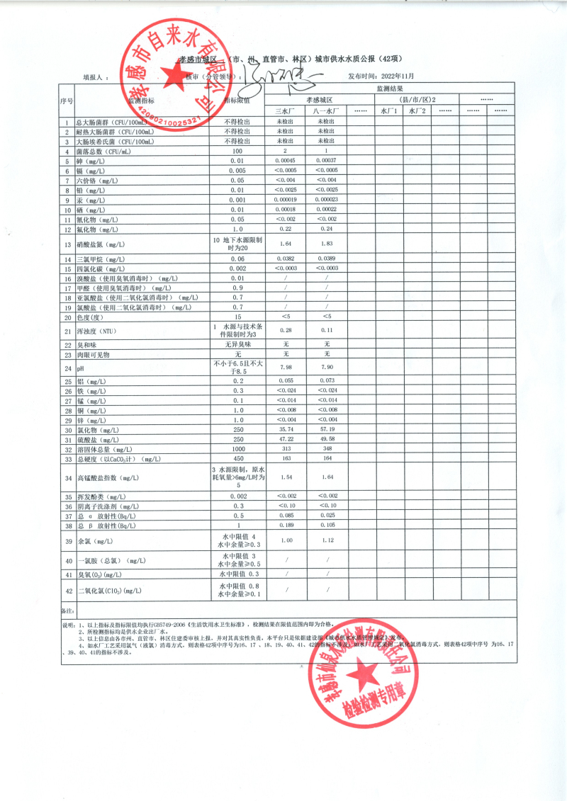 2022年11月水質(zhì)報(bào)告