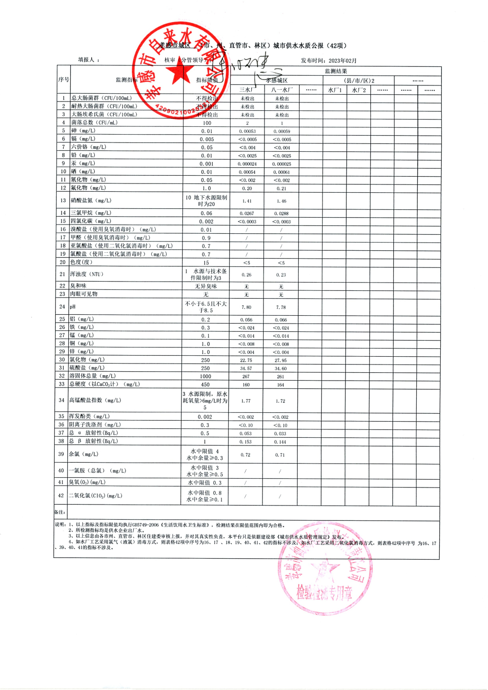 2023年2月水質(zhì)報告