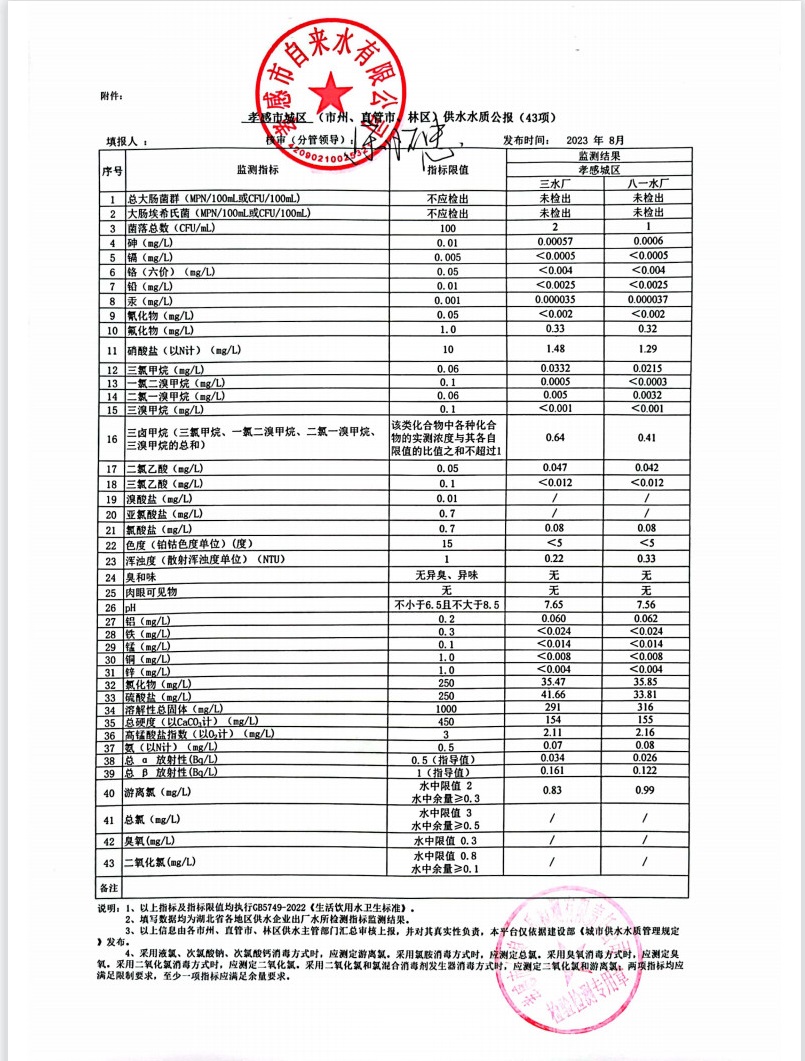 2023年8月水質(zhì)報(bào)告