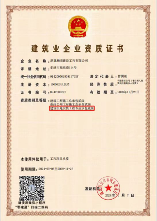 湖北暢泉建設(shè)工程有限公司繼去年晉升建筑工程施工總承包和市政公用工程施工總承包“雙貳級”資質(zhì)后,日前再傳捷報(bào),該公司獲批“建筑機(jī)電安裝工程專業(yè)承包貳級資質(zhì)”,實(shí)現(xiàn)技術(shù)實(shí)力再提升、業(yè)務(wù)范圍再拓展,進(jìn)一步提高了市場競爭力。下一步,該公司將按照澴川國投堅(jiān)持改革助推高速高質(zhì)量發(fā)展的總體部署,積極闖市場搶機(jī)遇,努力做大規(guī)模、做強(qiáng)實(shí)體,切實(shí)增強(qiáng)盈利能力與創(chuàng)業(yè)活力。