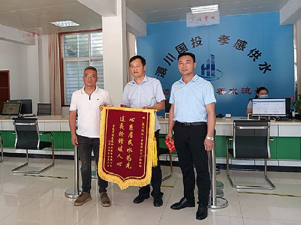 “非常感謝自來水公司,快速精準(zhǔn)地定位了漏點(diǎn),及時(shí)維修,保障了小區(qū)居民正常用水,幫我們解決了一個(gè)大難題!”7月5日上午,民邦熙公館小區(qū)物業(yè)工作人員將印有“心系居民水為先 連夜搶修暖人心”的錦旗送到了孝感市自來水有限公司,對(duì)我公司心系群眾、為民解憂,為用戶提供優(yōu)質(zhì)供水服務(wù)表示衷心感謝。