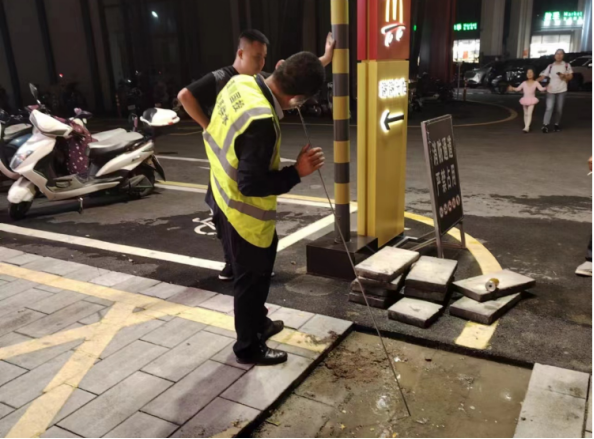 7月2日下午5點(diǎn)左右,公司客服熱線接到用戶反映,北京路民邦熙公館小區(qū)突然停水??蛻舴?wù)部工作人員第一時(shí)間來到現(xiàn)場(chǎng),經(jīng)現(xiàn)場(chǎng)勘查發(fā)現(xiàn),小區(qū)進(jìn)水管道漏水,初步懷疑是內(nèi)部管道存在漏點(diǎn),造成停水。