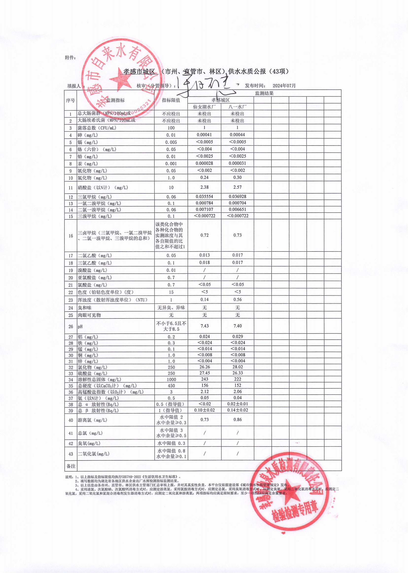 2024年7月水質(zhì)報(bào)告