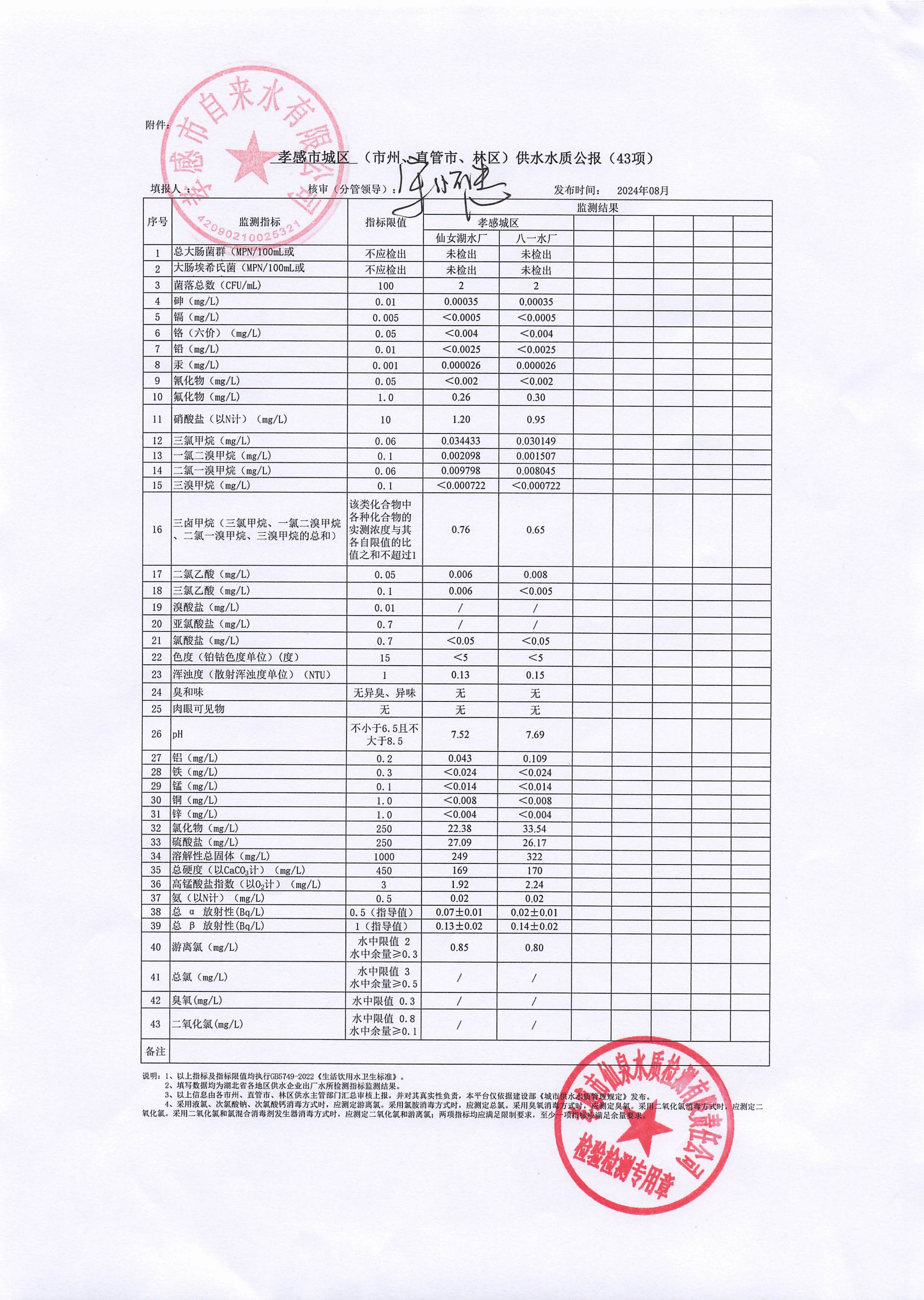 2024年8月水質(zhì)報告