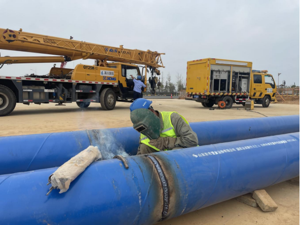 此次管線遷改共需對2條道路(復興大道、縱九路)4個路口共計1600余米的供水管線進行遷改,該工程工期短、地下管線情況復雜,施工難度教高。為高效配合完成京港澳高速公路改擴建工程,全力保障復興大道、縱九路及周邊企業(yè)、用戶正常用水,公司克服一切困難,對高速擴建施工實施24小時全天候配合保障,并提前一個月組織專業(yè)技術人員多次進行現(xiàn)場踏勘,細化管線施工連接點位置、停水時間、焊接點位和方式,制定周密管線遷改接水方案,為新舊管道連接敷設做好了充足準備。