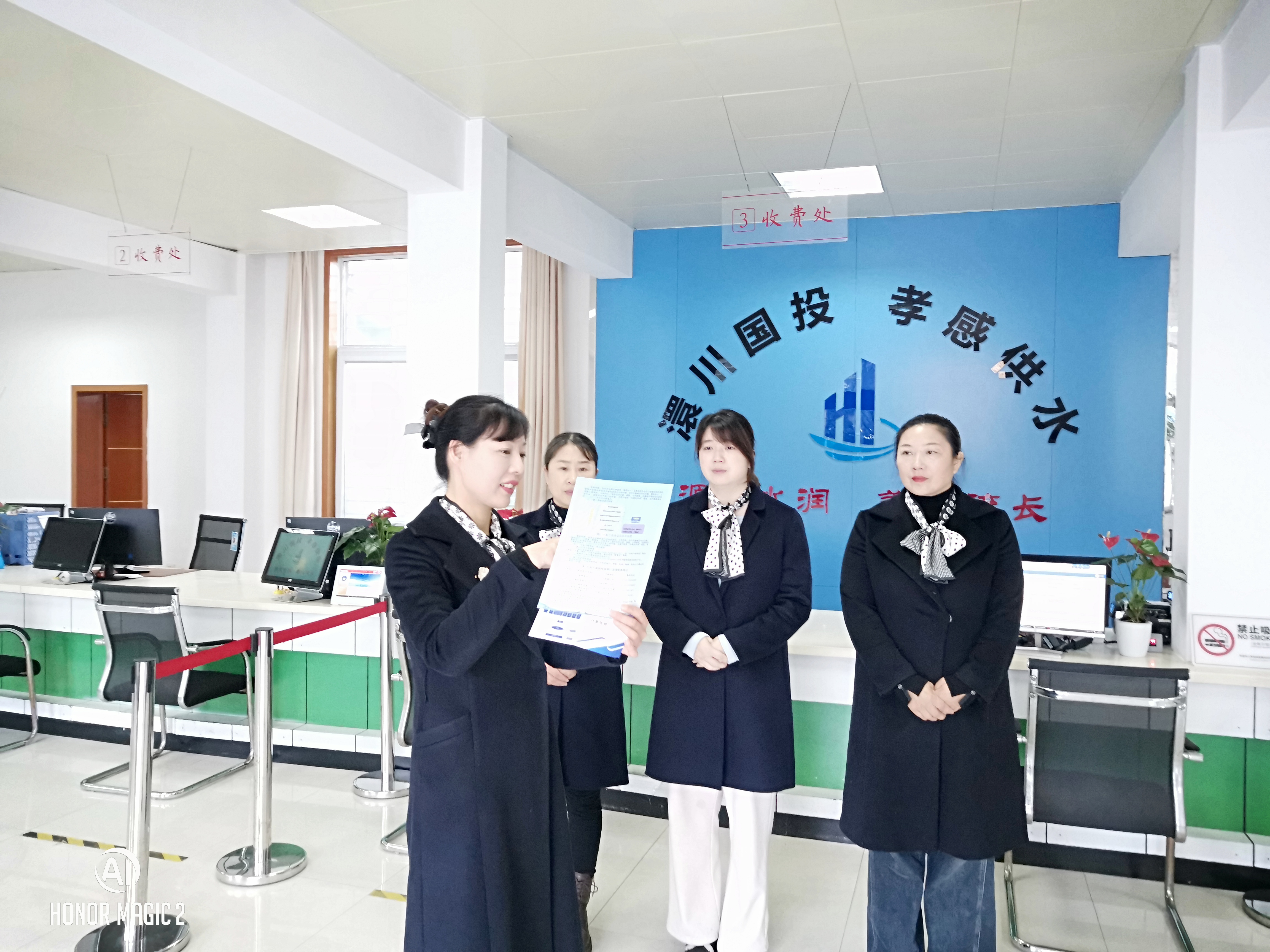 她強(qiáng)調(diào),大廳客服人員要始終秉承“服務(wù)為本 用戶至上”服務(wù)理念,認(rèn)真學(xué)習(xí)“高效辦成一件事”應(yīng)知應(yīng)會(huì)知識(shí),全面熟練掌握用水咨詢、獲得用水報(bào)裝和水電氣網(wǎng)相關(guān)業(yè)務(wù)辦理流程,加強(qiáng)“一窗通辦”服務(wù)和溝通能力,積極主動(dòng)協(xié)調(diào)供電、供氣、通訊相關(guān)單位,為用戶提供高效快捷的“一事聯(lián)辦”服務(wù),切實(shí)提升用戶用水體驗(yàn)感和獲得感。