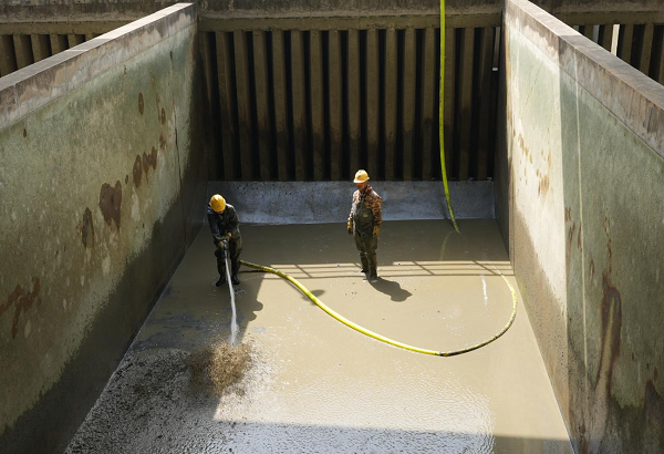 平流池作為水處理核心設(shè)施,長(zhǎng)期截留原水中的泥沙、藻類及重金屬顆粒。若未定期清理沉積物可能滋生微生物,甚至釋放二次污染物,池底淤積也會(huì)改變?cè)O(shè)計(jì)水流形態(tài),影響絮凝體沉降效率。此次清洗工作可恢復(fù)池體過(guò)水?dāng)嗝妫粌H能有效預(yù)防二次污染、減輕濾池負(fù)荷,還可降低水處理藥劑成本,助力水處理工藝穩(wěn)定運(yùn)行,保障優(yōu)質(zhì)的出廠水水質(zhì)。