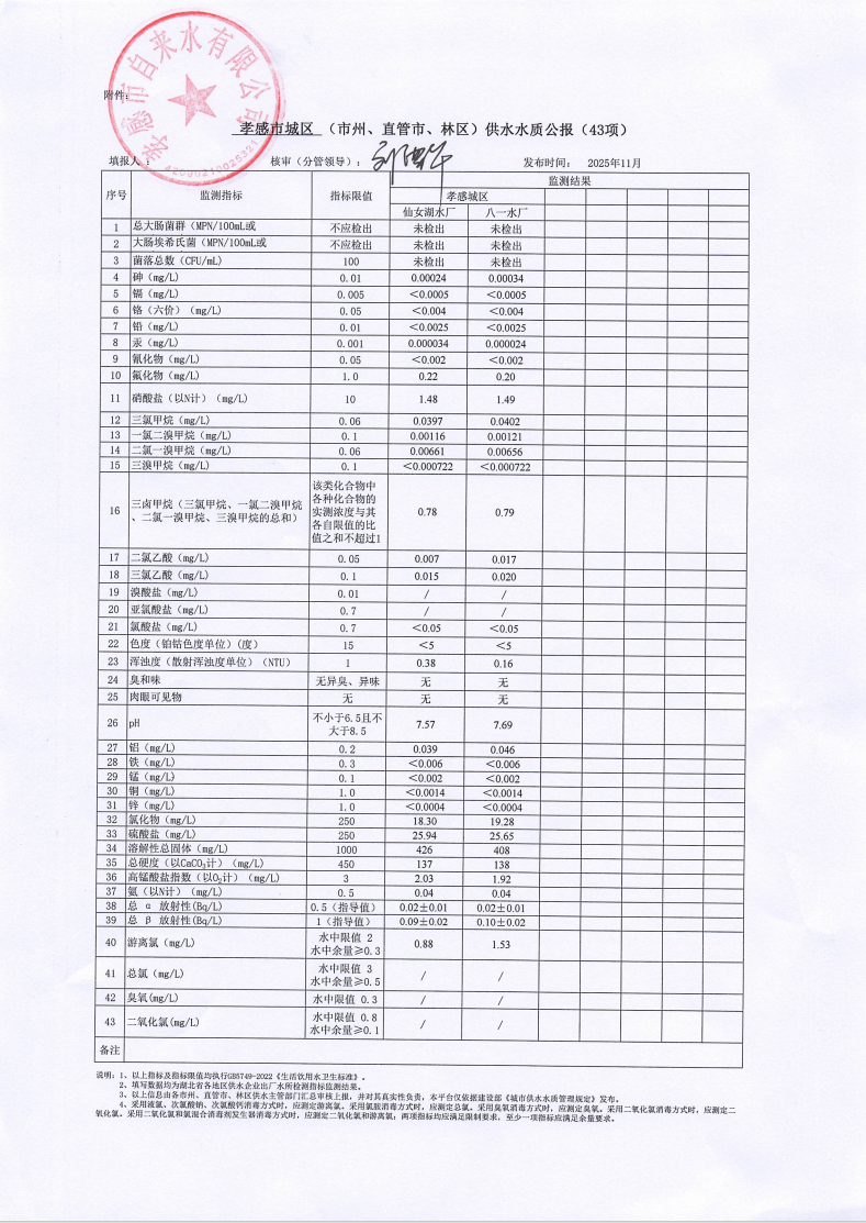 2025年11月水質(zhì)報告