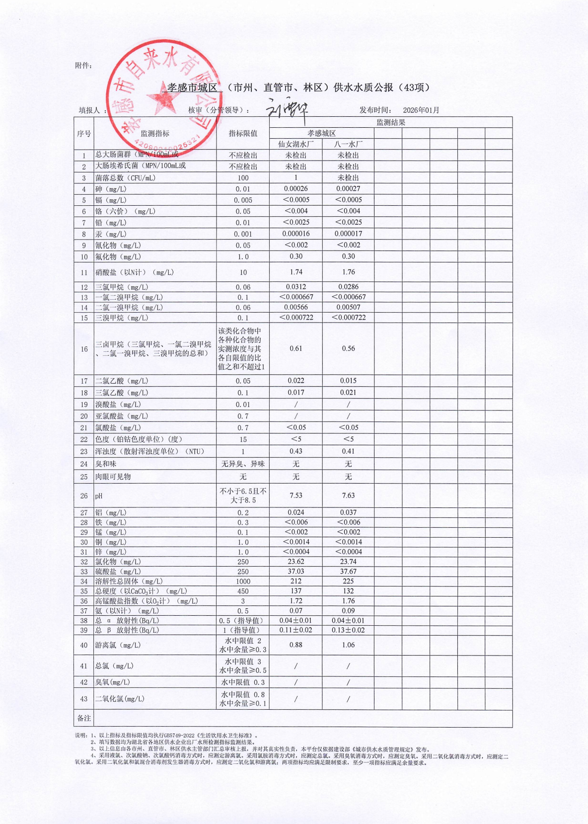 2026年1月水質(zhì)報告