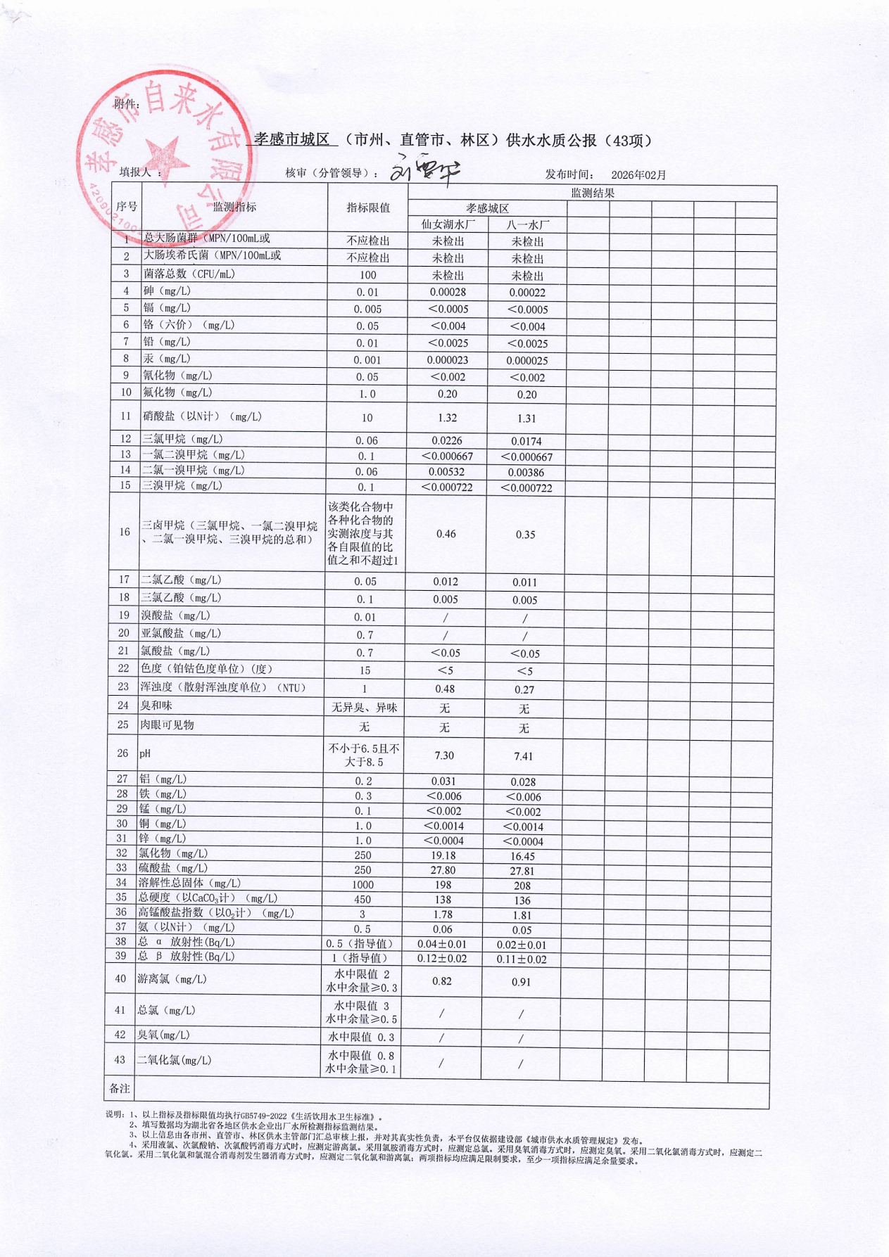 2026年2月水質(zhì)報(bào)告