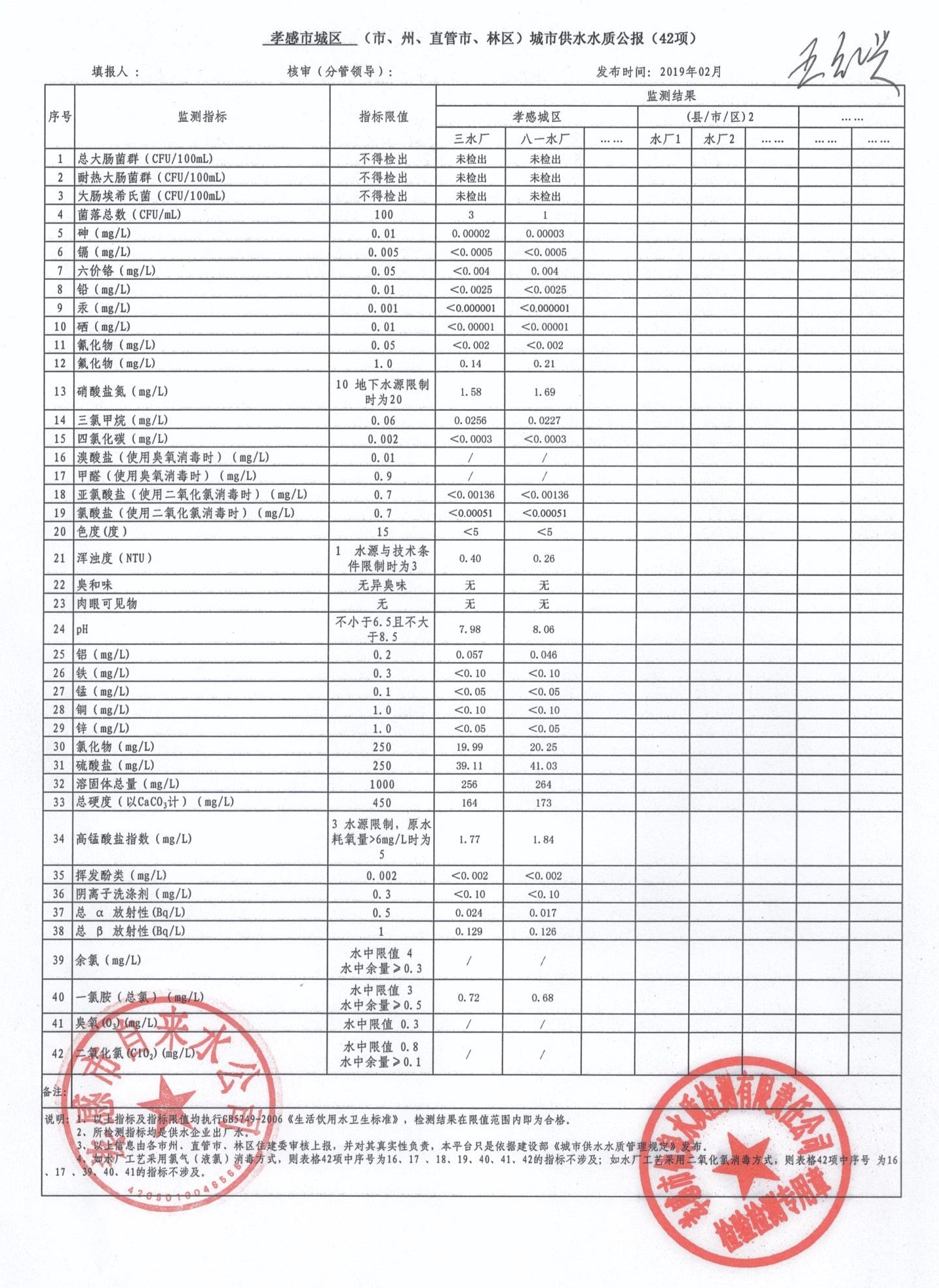 2019年2月水質(zhì)報告