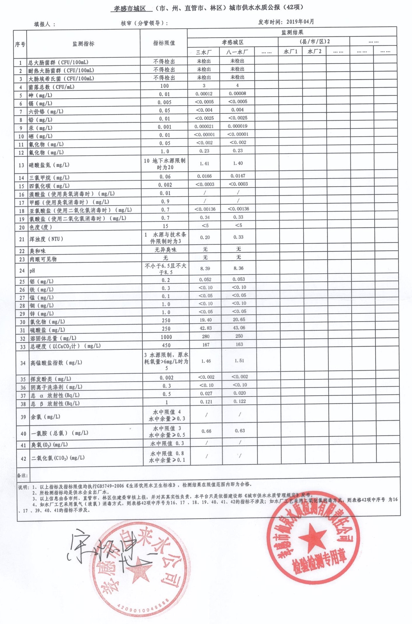 2019年4月水質(zhì)報告