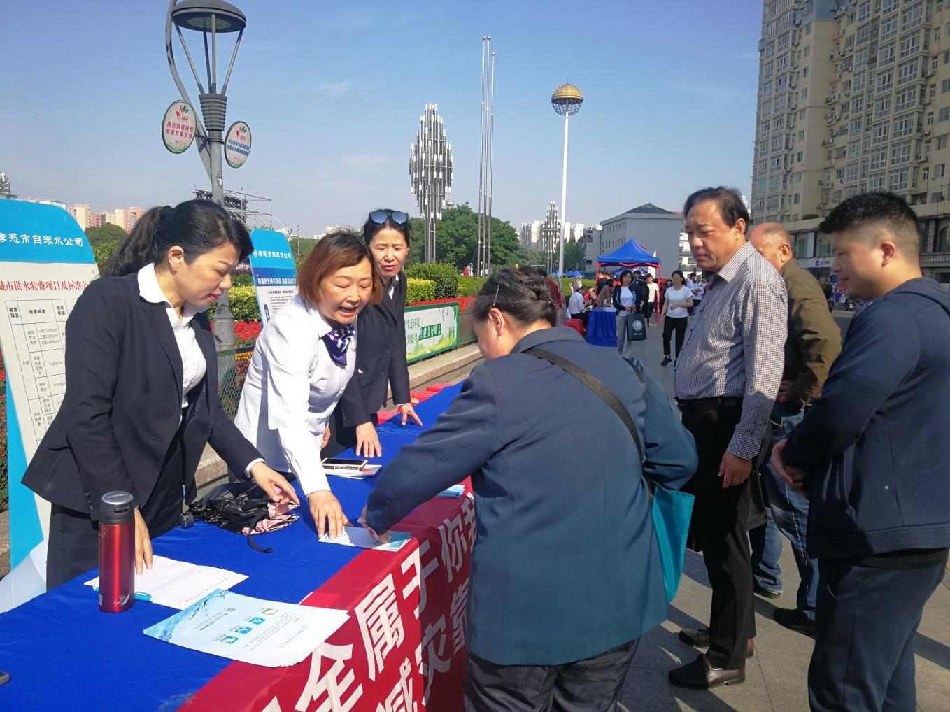 宣傳活動(dòng)中,我公司通過擺放供水安全知識(shí)、防災(zāi)減災(zāi)知識(shí)展板、懸掛防災(zāi)減災(zāi)宣傳橫幅、發(fā)放宣傳資料300余份、組織現(xiàn)場(chǎng)咨詢等形式,向廣大市民講解我市供水形勢(shì)、供水節(jié)水小常識(shí)、供水便民服務(wù)政策、防災(zāi)減災(zāi)方式方法,提升居民的水資源節(jié)約意識(shí)和防災(zāi)減災(zāi)能力?;顒?dòng)現(xiàn)場(chǎng)氣氛熱烈,得到群眾廣泛參與,營造了“防災(zāi)事關(guān)你我他,減災(zāi)利國又利家”的輿論氛圍。