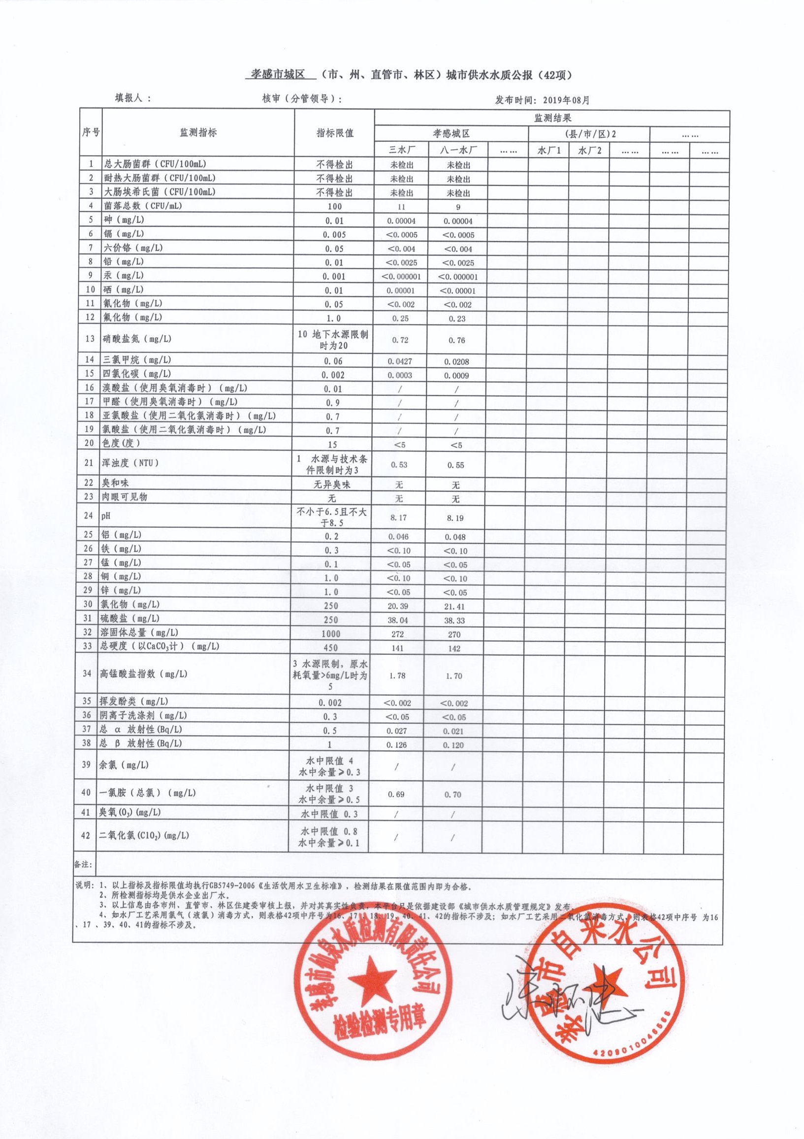 2019年8月水質(zhì)報告